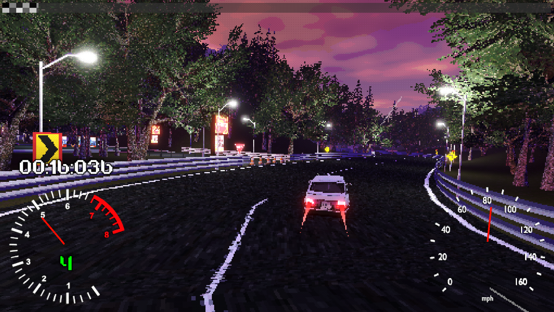 Pulse is a pick up and play couch co-op racing game. Wherein the players use controllers to drive retro cars around a PS1 vaporwave style world where they earn their license in the tutorial before racing each other around tracks set in japan, while drifting around corners to earn speed boosts to win the race, all set to a synth heavy sound track.